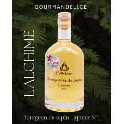 LIQUEUR N°1 Nous vous proposons ce coffret qui comprend une bouteille de Liqueur de Bourgeon de Sapin en 50 cl et 2 verres 5 cl sérigraphiés "L'Alchimie" Notre liqueur de Bourgeons de Sapin est obtenue par macération des bourgeons de sapin avec de l’alcool de premier choix, sans arôme ajouté,...
